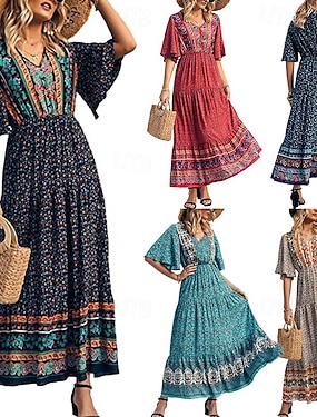 Scollo a V Classico Elegante Retrò Vestiti Attivo Essenziale Sexy Vacanza Vintage Festa Casual Formale Semplice Caldo Spiaggia Tropicale Tempo libero Anni 1950 Compleanno Vacanza Brillanti Stile Boho Romantico Bohemien Etnico Gotico Dolce Moda Moderno Casual Quotidiano Carino Boho Streetwear Elegante Abito a Fantasia africano Abito Maxi Hawaiano Linea A Abito da vacanza Morbido Atletico Quotidiano Stile da Strada fluente Estate Maturo Larghi Abito elegante Abito sexy cocktail Tribale Modesto Linea A Vacanza al Mare Stile di Moda Semplice Moda & Sexy Ins Abiti semi formalimore