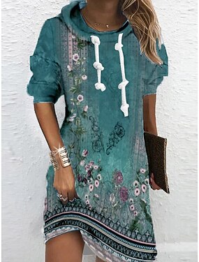 Abito Felpa Donna Abito Hoodie Abito Mini Abito Svasato Casual Festa Boho All'aperto Casa Sport Fit Regolare Grafica Floreale Maniche Lunghe Cappuccio Blu Verde Primavera Autunno Inverno