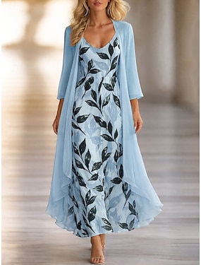 Per donna Insieme del vestito Abito a trapezio Elegante Vacanza Floreale Grafico Stratificato Stampato Abito Midi Manica 3/4 Scollo a V Quotidiano Vacanza Blu Verde chiaro Rosa Estate Primavera