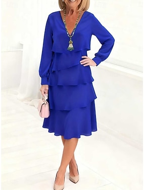 Per donna Abito Midi Vestito in Chiffon Abito a Strati Elegante Uscire Vestibilità regolare Colore Puro Manica Lunga Girocollo Blu Nero Rosa Rosso Autunno