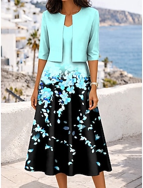 Per donna Insieme del vestito Abito Midi Abito a trapezio Elegante Casual Floreale Grafico Stratificato Stampato Abito Midi Mezza Manica Scollo a V Quotidiano Blu Estate Primavera Vestibilità regolare