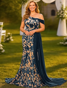 Abito da sera a A Elegante abito formale per matrimonio lunghezza fino al pavimento maniche lunghe colletto a girocollo in chiffon con paillettes
