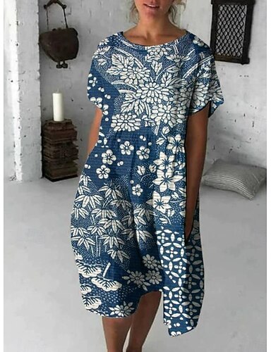 Per donna Femminile Vestito Casual Abito Midi Eco Green sabbia calda Blu Manica Corta Geometrico Estate Scollo a V Stampa XS S M