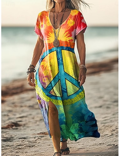 Per donna Abito maxi Abito a trapezio Casual All'aperto Uscire Vestibilità comoda Floreale Grafico Mezza Manica Scollo a V Blu Rosa Arcobaleno Estate Primavera