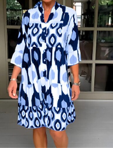 Per donna Mini Abito Vestito Casual Abito Estivo Moda Moderno Quotidiano Spiaggia Weekend Vestibilità regolare Geometrico Mezza Manica Scollo a V Blu Marrone Verde Estate