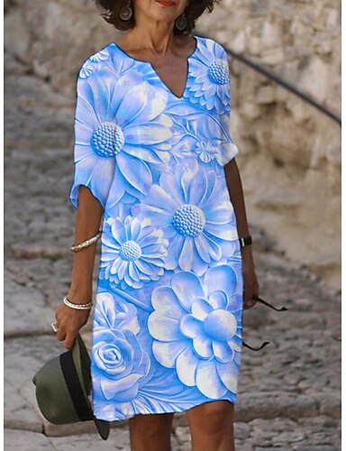 Per donna Abito Midi Tubino Vestito T-Shirt Abito a trapezio Abito Estivo Vacanza Casual Boho Quotidiano Abito Estivo Abito Primaverile Vestibilità comoda Floreale Grafico Manica Corta Girocollo Blu