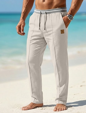 Per uomo Pantaloni di lino Pantaloni Pantaloni estivi Pantaloni da spiaggia A cordoncino Vita elastica Plissettato Liscio Comfort Traspirante Informale Giornaliero Per eventi Di tendenza Classico