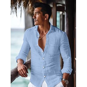 45% Lino Tasche Per uomo camicia di lino Camicia Camicia con bottoni Camicia estiva Nero Bianco Blu Manica lunga Liscio Bavero Primavera & Autunno Esterno Giornaliero Abbigliamento