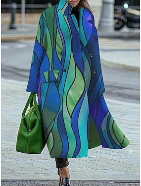 Per donna Cappotto Invernale Cappotto Confortevole Traspirante Tasca Bottoni Stampato Casual Blocco di colori Vacanza Streetwear Casuale Abbigliamento quotidiano Monopetto Lungo Collo ripiegato