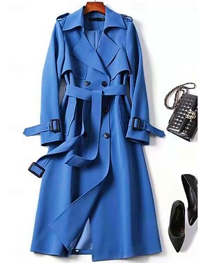 Per donna Trench Confortevole Traspirante Bottoni Con cintura Casual Semplice Vacanza Streetwear Casuale Abbigliamento quotidiano Monopetto Lungo Collo ripiegato Vestibilità regolare Manica Lunga