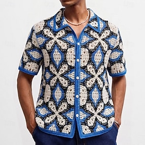 Per uomo Polo Polo a maglia intrecciata Casuale Streetwear Bavero Manica Corta Vintage Essenziale Geometrico Leggero Bottoni Estate Primavera Vestibilità regolare Blu Polo