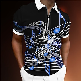 Festival musicale Per uomo Musica Polo con zip Maglia da golf Manica Corta Magliette polo Camicie con Colletto Casual Abbigliamento da vacanza Abbigliamento da festa Abiti da festa Stampa 3D Polo con