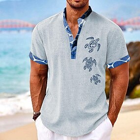 Per uomo Tropicale Tartaruga Camicia estiva Maglietta informale Camicia hawaiana Manica corta Camicia Colletto alla coreana Hawaiano Ricorrere Da mare Per eventi Per uscire Blu chiaro Nero Bianco S M