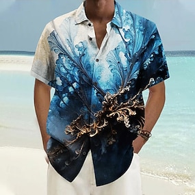 Per uomo Motivo Camicia da Spiaggia Camicia con Bottoni Manica Corta Hawaiano Casual Vacanza Quotidiano Estate Primavera Collo ripiegato Camicie con Colletto Cardigan con Bottoni Stampa 3D Blu chiaro