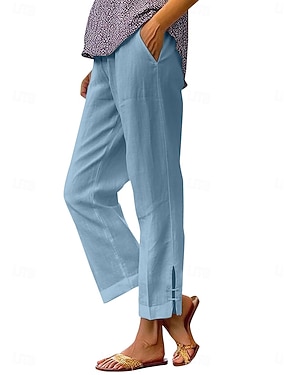 Per donna Pantaloni in cotone e lino Chinos Pantaloni Estivi Dritto Vacanza Streetwear Essenziale Lunghezza intera Vita media Semplice Tasca Elastico in vita Comodo Comodità Confortevole Inelastico