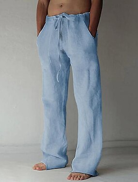 Per uomo Pantaloni di Lino Pantaloni Pantaloni Estivi Coulisse Elastico in vita Semplice Comodità Morbido Lunghezza intera Quotidiano Spiaggia Moda Semplice Bianco Blu Micro-elastico