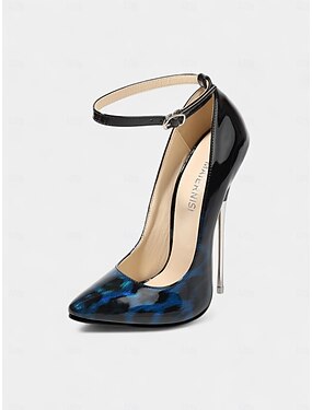 Scarpe con tacco a spillo in vernice da donna con cinturino posteriore – punta affilata, texture coccodrillo, colore sfumato, per riunioni di lavoro