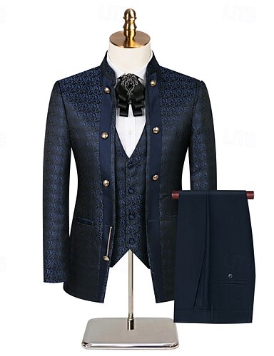 Uomo Smoking Abiti da festa Casuale Balli di fine anno Blu Nero Primavera, Autunno, Inverno, Estate Tuta Collo alla coreana Moda Lusso A Motivi Vestibilità aderente 3 pezzi Doppiopetto a sei bottoni