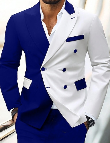 Uomo Smoking Abiti da festa Casuale Palcoscenico Blu Rosso Primavera, Autunno, Inverno, Estate Tuta Bavero a lancia Moda Quotidiano Patchwork Vestibilità su misura 2 pezzi Doppiopetto a sei bottoni
