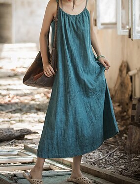Per donna Abito Midi Abiti in cotone e lino Abito a Tubino Vestito Estivo Abito Sottoveste Vintage Moda Quotidiano All'aperto Vacanza Vestibilità comoda Semplice Senza Maniche Spalline Blu Verde