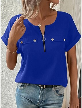 Per donna Maglietta Cerniera Tasca Semplice Moda Elegante Moderno Manica Corta Scollo a V Top lunghi Quotidiano Weekend Blu Nero Rosa Vino Viola Estate Primavera
