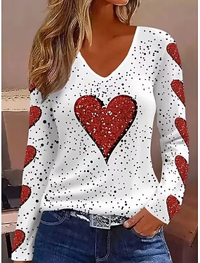 San Valentino Per donna Maglietta Stampato Cuore Grafico Moda Elegante Classico Manica Lunga Girocollo Top Regolari Quotidiano Weekend Blu Nero Rosa Rosso Estate Primavera Autunno