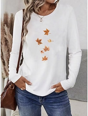 Per donna Maglietta Stampato Floreale Grafico Piante Moda Elegante Classico Manica Lunga Girocollo Top Regolari Quotidiano Weekend Grigio Estate Primavera Autunno