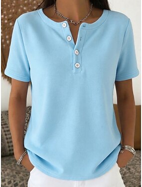 Per donna Maglietta Bottoni sul petto Semplice Moda Elegante Classico Manica Corta Henley Top Regolari Quotidiano Uscire Weekend Blu Nero Bianco Rosso Blu marino Estate Primavera