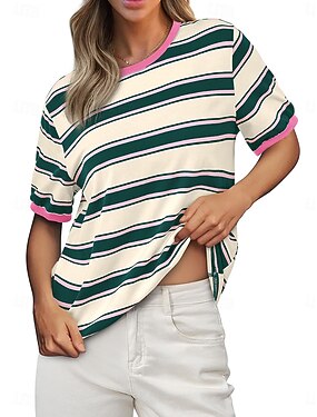 Per donna Blusa Patchwork A righe Elegante Moderno Casual Manica Corta Girocollo Top Regolari Quotidiano Ferie Uscire Blu Nero Viola Verde Estate Primavera