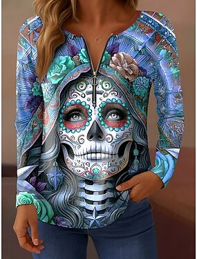 T Shirt da donna Teschi Grafica Vintage Stile Casual Manica Lunga Collo Rotondo Regolare Tops Quotidiano Weekend Stampa Gialla Rosa Blu Grigia Autunno Inverno