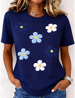 Per donna Maglietta Stampato Floreale Grafico Piante Moda Elegante Classico Manica Corta Girocollo Top Regolari Casuale Quotidiano Weekend Blu Marrone Scuro Verde con beige Nero Bianco Estate