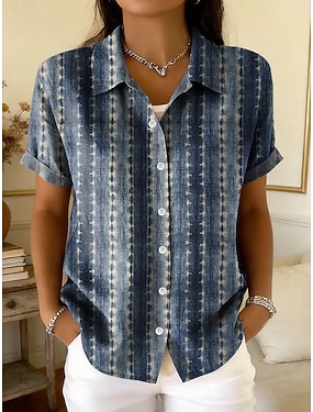 Per donna Camicia Grafico Geometrico Vintage Elegante Moderno Manica Lunga Colletto a Camicia Top Regolari Casuale Quotidiano Blu Estate Primavera