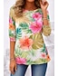 Per donna Maglietta Stampato Floreale Grafico Piante Elegante Classico Moderno Manica Lunga Girocollo Top Regolari Quotidiano Weekend Abbigliamento da vacanza Blu Rosa Verde Estate Primavera Autunno
