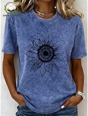T-shirt da donna in 100% cotone vintage lavato top stampa grafica piante elegante basic classica a maniche corte girocollo girocollo regolare top casual quotidiani blu verde avocado nero rosa viola