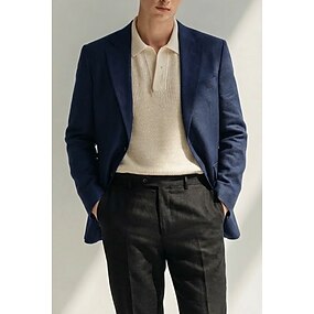Per uomo Giacca blazer Matrimonio Anniversario Feste Estate Primavera 100% Lino Lino Tinta unica Monopetto Un Bottone Giacca Blu marino Blu Beige