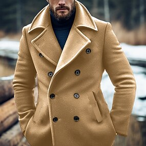Per uomo Cappotto invernale Peacoat Trench Esterno Da tutti i giorni Autunno inverno Poliestere Tenere al caldo Antivento Capispalla Abbigliamento Di tendenza Streetwear Liscio Bavero Doppiopetto