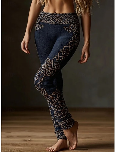 Leggings Boho Viking da donna Vintage Stile Etnico Full Length Alta Vita Grafica Astratta Stampa 3D Asciugatura Rapida Traspirabilità Morbidi Elasticizzati Formali Vacanza Blu Estate Primavera