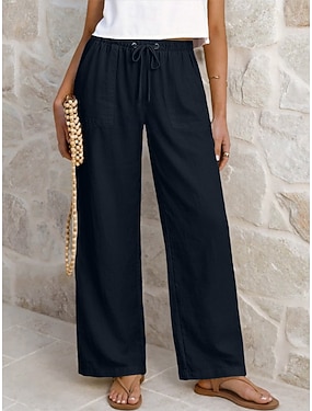 Per donna Pantaloni di Lino Pantaloni Pantaloni casual Pantaloni Estivi Vacanza Moda Essenziale Lunghezza intera Vita media Semplice Coulisse Elastico in vita Gamba Dritta Leggero Traspirante