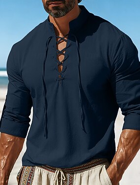Per uomo Camicia Stile vichingo Camicia Estiva Abbigliamento da spiaggia Camicia pirata Tinta unica Casuale Vacanza Bianco Blu marino Azzurro cielo Verde Manica Lunga Collo alla coreana Estate