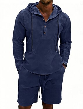 Per uomo Camicia di lino Due pezzi Camicia popover E Shorts Shorts di Lino Shorts da Spiaggia Impostare Semplice Quotidiano All'aperto Vacanza Con Cappuccio Manica Lunga Estate Moda Casual