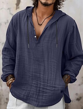 Per uomo Camicia Camicia di lino Camicia Estiva Abbigliamento da spiaggia Camicia con cappuccio Camicie sbottonate Tinta unica Vacanza Streetwear Nero Bianco Blu marino Azzurro cielo Manica Lunga