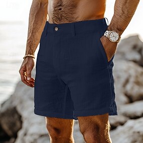 Per uomo Shorts Shorts di Lino Shorts eleganti Pantaloncini Estivi Shorts da Spiaggia Tasca Bottoni Gamba Dritta Semplice Comodità Traspirante Lunghezza al ginocchio All'aperto Casuale Quotidiano