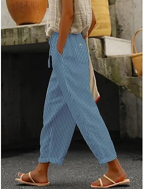 Per donna Finto cotone e lino Pantaloni Eleganti Pantaloni Estivi Moda Streetwear Comfort Lunghezza alla caviglia Misura del girovita medio A righe Elastico in vita Comodo All'aperto Confortevole