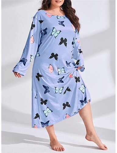 pigiama da donna taglie forti per San Valentino, pigiama da notte a forma di cuore, farfalla, moda casual, casa, letto, comfort, traspirante, girocollo, manica lunga, primavera, abiti per la casa