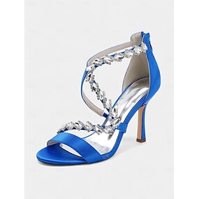 sandali da donna con tacco a blocco in raso blu reale e cinturini in strass, eleganti tacchi a spillo con cinturino alla caviglia per feste e matrimoni &eventi serali
