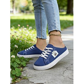 Sneakers slip-on da donna in tela verde con lacci – comode scarpe da ginnastica senza schienale, ideali per passeggiate, shopping, corse a scuola e giornate estive informali
