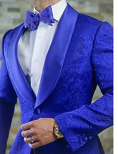 Uomo Feste Matrimonio Smoking Rosa Blu Reale Tinta unica Vestibilità standard 3 pezzi Monopetto a un bottone
