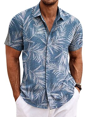 Per uomo Camicia camicia di lino Camicia da spiaggia Camicia hawaiana Foglie Esterno Strada Blu Reale Blu Viola Verde Maniche corte Collo ripiegabile Estate Primavera Abbigliamento Stampa