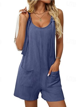 Per donna Normale Tuta Streetwear Tinta unica Senza Maniche Collo quadrato Senza schiena Streetwear Quotidiano Vestibilità regolare Rosa Blu Reale Cachi Estate