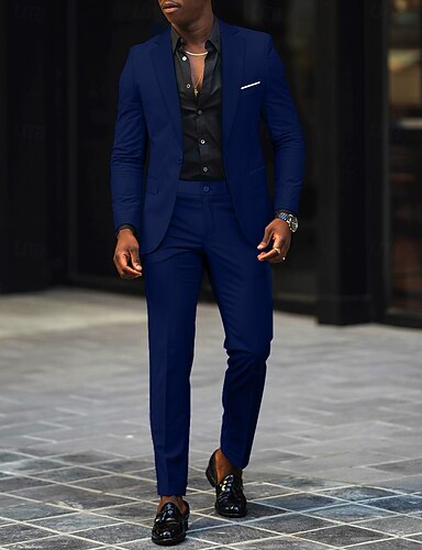 Uomo Smoking Completi Feste Blu verde Nero Primavera, Autunno, Inverno, Estate Tuta Dentellato Bavero classico Moda Casual Tinta unita Vestibilità aderente 2 pezzi Monopetto Due Bottoni
